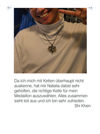 Ich kümmere mich gerne um Dich. Deshalb bekommst Du Deinen Schmuck in einer eleganten Schachtel, in der Du ihn weiter aufbewahren kannst. In der Schachtel ist der Schmuck vor äußeren Einflüssen geschützt.