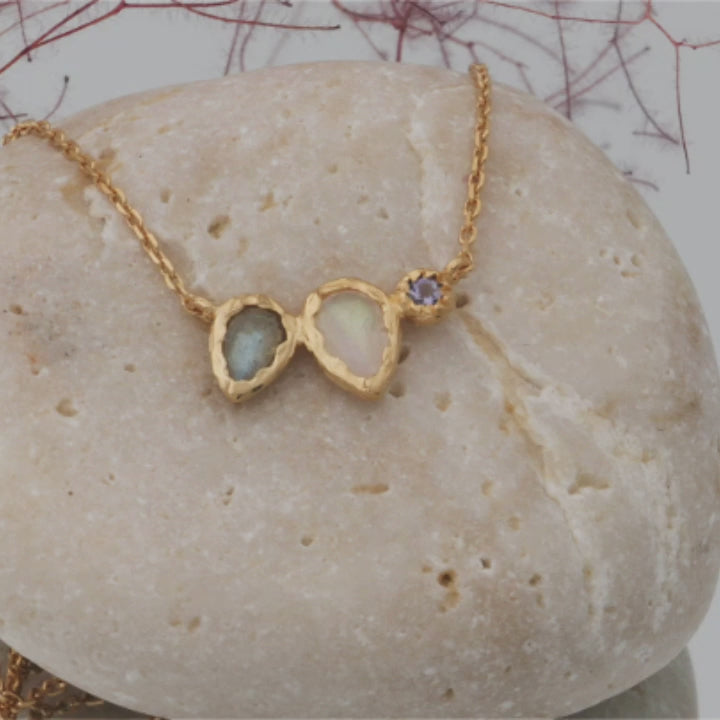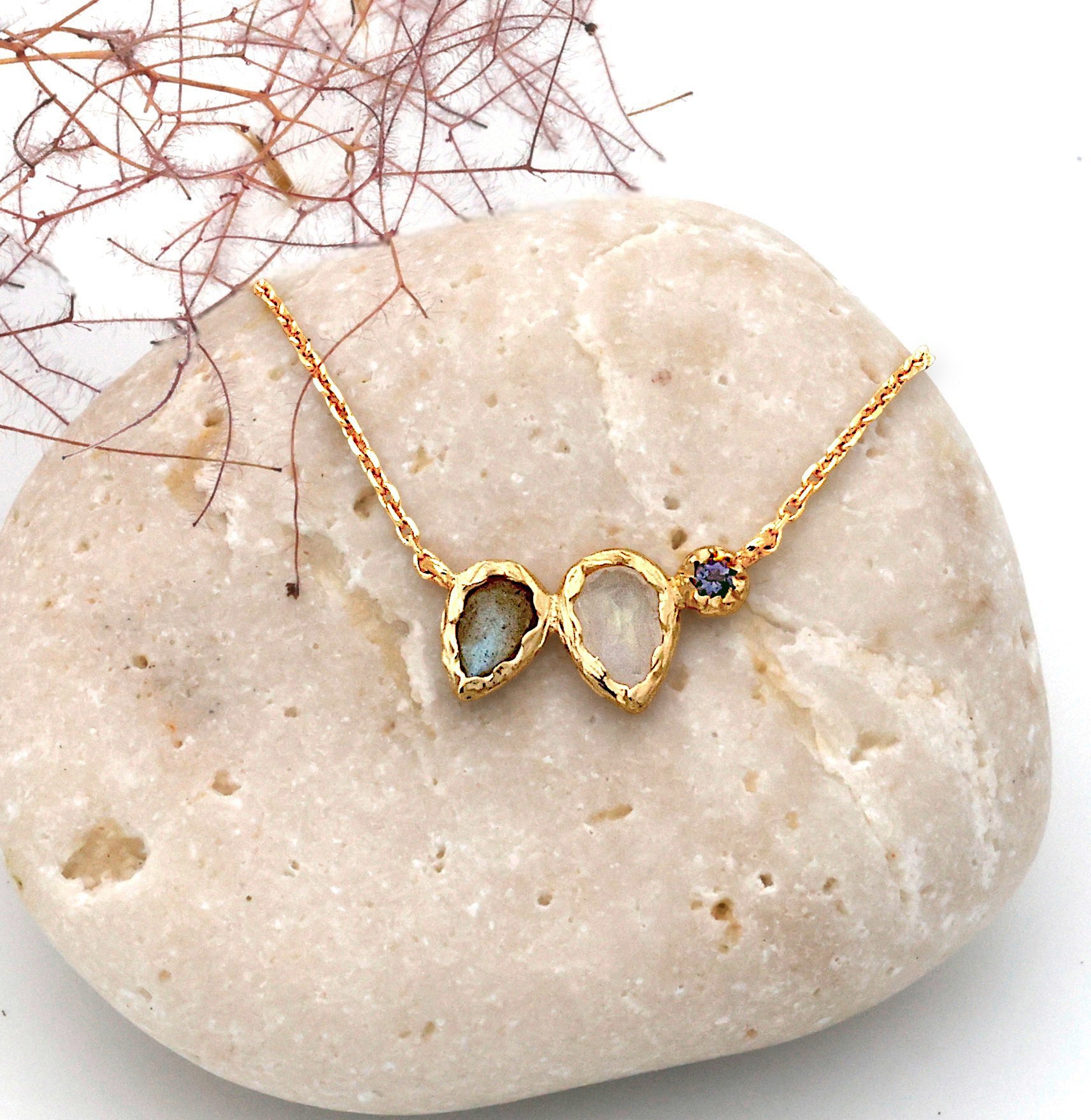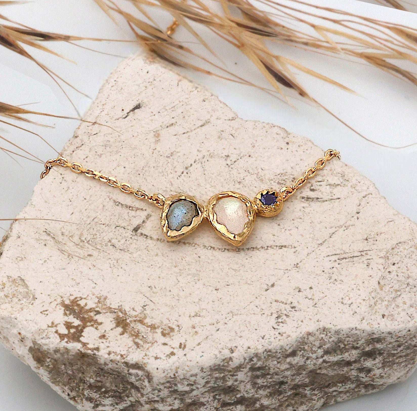 Collier mit Mondstein, Labradorit und Iolith