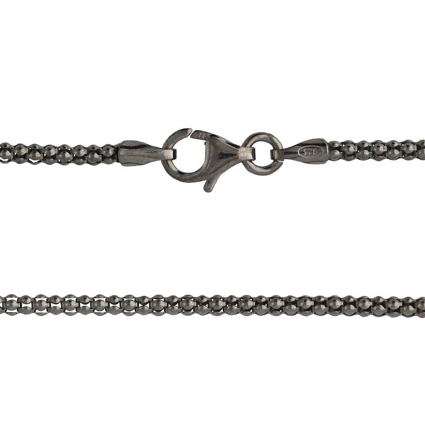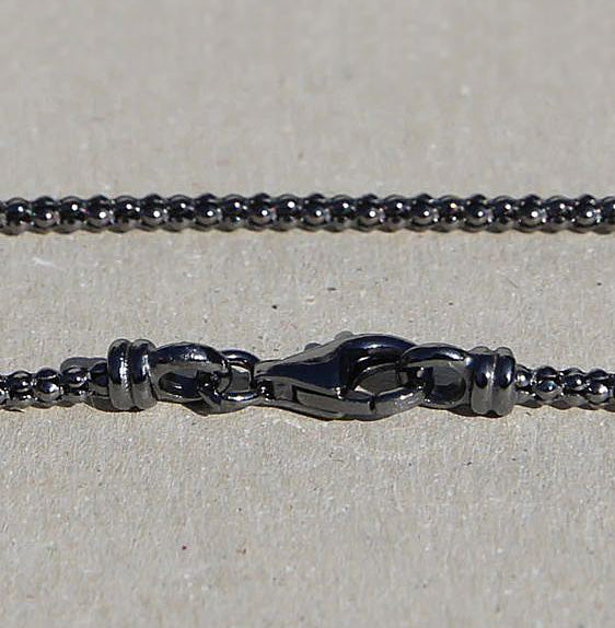 Die Himbeerkette aus rutheniertem 925er Sterlingsilber.